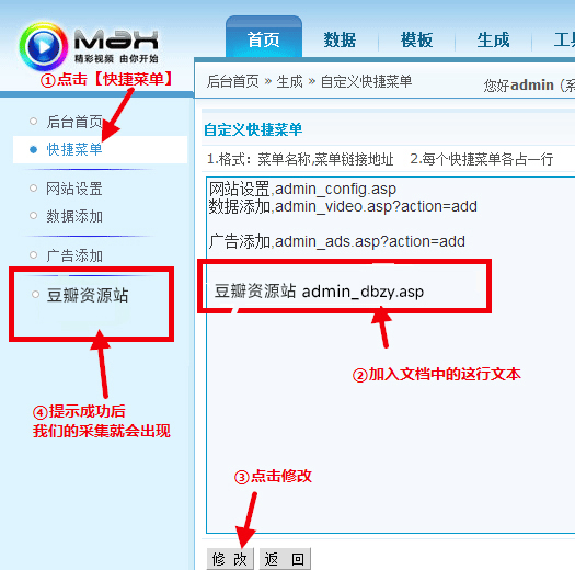- 采集方法:视频库管理->视频采集->豆瓣资源采集